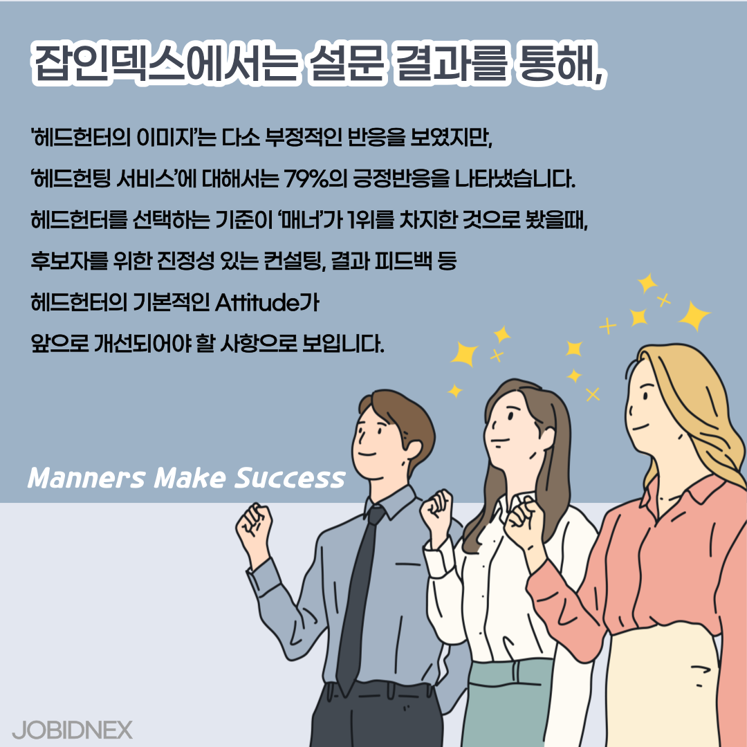 다만, 일부 헤드헌터의 불성실한 태도로 인해 '헤드헌터의 이미지'는 다소 부정적인 반응을 보였지만