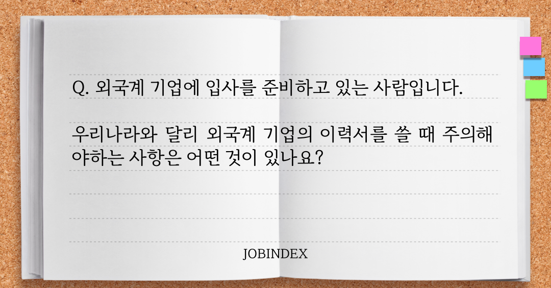 그래서 준비한 오늘의 주제는 '외국계 기업 이력서 작성 주의사합'입니다.