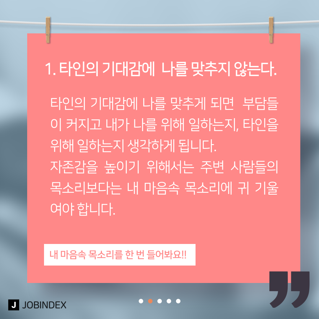 그래서 오늘 준비한 주제는 떨어진 자존감 높이는 방법입니다. 다음 제시된 방법을 보고 떨어진 자존감을 회복해보아요 ☺