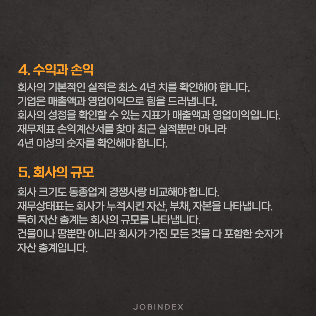 이직하는 회사의 재무제표를 확인하려고 하는데, 중점적으로 봐야할 사항이 있을까요? 7,123 1 1 회사의 재무제표를 알면 회사의 정보를 거의 다 아는 것이라고 하는데, 이직할 회사의 재무제표에서 무엇을 중점적으로 확인해야하는지 궁금합니다. ☞ Q&A 보러 가기 `21.06.23 다음글경력직 이직 준비를 위한 헤드헌팅 용어 알아보기 이전글[직장 생활] 피해야 할 회사 유형