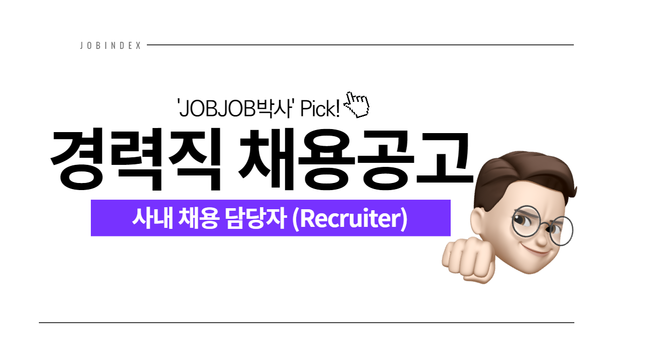 오늘은 기업 등 조직에 필요한 사람을 찾아내어 공급하는 "사내 채용 담당자(Recruiter)" 채용 소식을 전달드리려고 합니다!