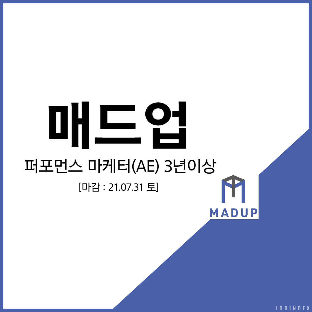 기술과 데이터를 기반으로 한 압도적인 퍼포먼스로 디지털 마케팅 시장을 선도하는 "매드업" 에서 퍼포먼스 마케터(AE)를 채용 합니다!