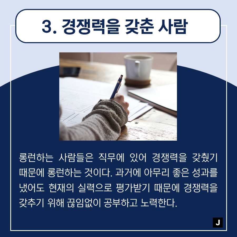 [직장생활] 직장에서 롱런하는 인재들의 특성 7,640 2 3 연차가 쌓였을 때, 직장에서 롱런하는 인재가 되기 위해서는 어떻게 해야 할까요? 그래서 알아본 오늘의 주제는 '직장에서 롱런하는 인재들의 특성'입니다! 😊 경력직 이직은 잡인덱스 JOBINDEX `21.07.08(updated. `21.07.19) 다음글[#9 놓치면 안 될 경력직 채용공고] - 'UX / UI 디자이너' 모음 이전글[헤드헌터 업무지식] 대형 서치펌, 소형 서치펌 어떤 장, 단점이 있나요?