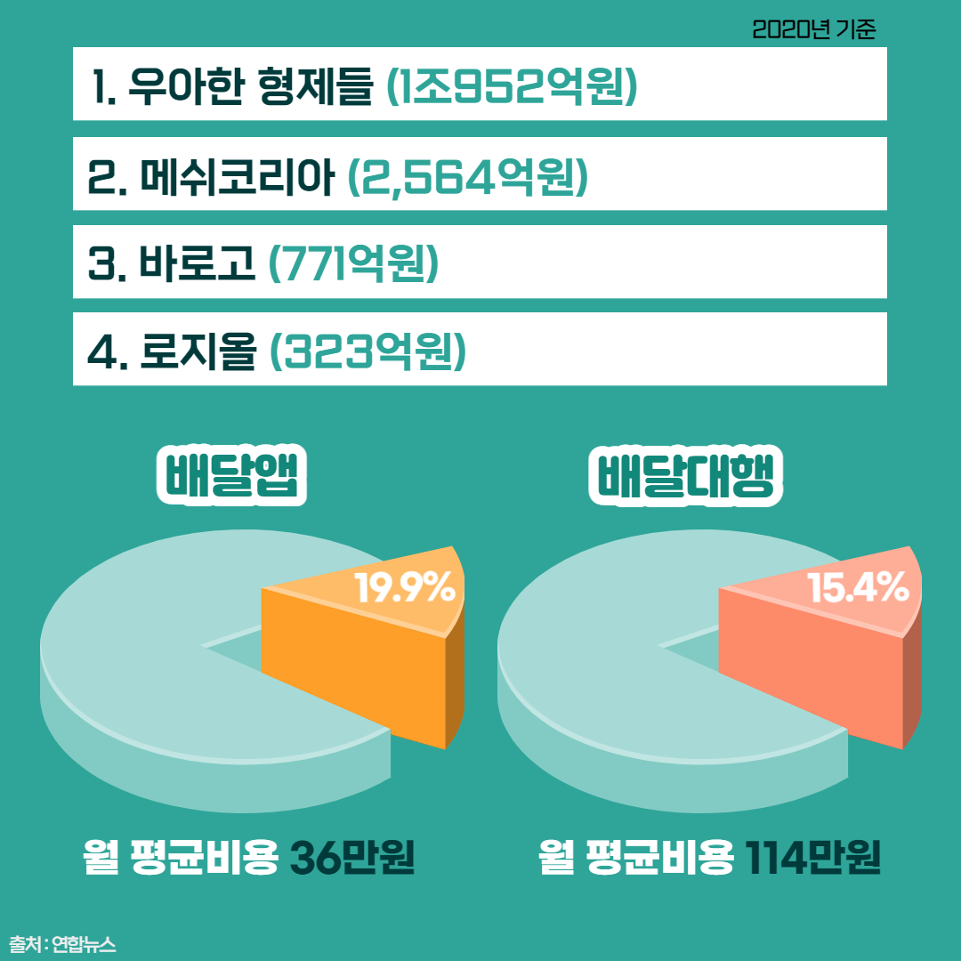 2020년 배달업계 매출 현황은 어떻게 되나요?