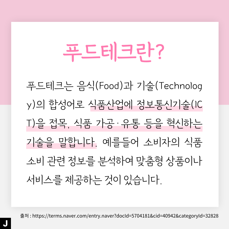 우리 일상 속에서 푸드테크가 많이 활용되고 있는데요, 그래서 준비한 오늘의 주제는 🍦차세대 먹거리 기술 푸드테크🍦입니다.