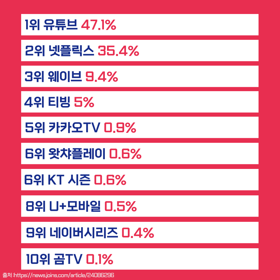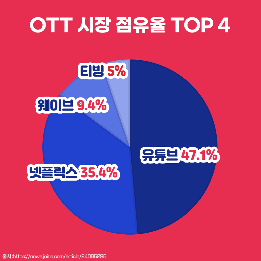 유튜브 프리미엄이나 넷플릭스를 둘 중의 하나만 보시는 분들도 있고, 둘 다 이용하는 분들도 있습니다. 그래서 준비한 오늘의 주제는 'OTT 시장 유료 플랫폼 점유율'입니다!