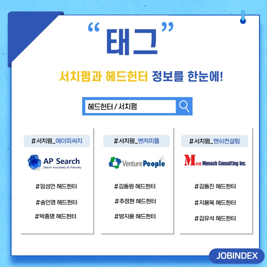 잡인덱스 태그에서는 헤드헌터와 서치펌 관련한 정보를 한눈에 모아볼 수 있습니다.