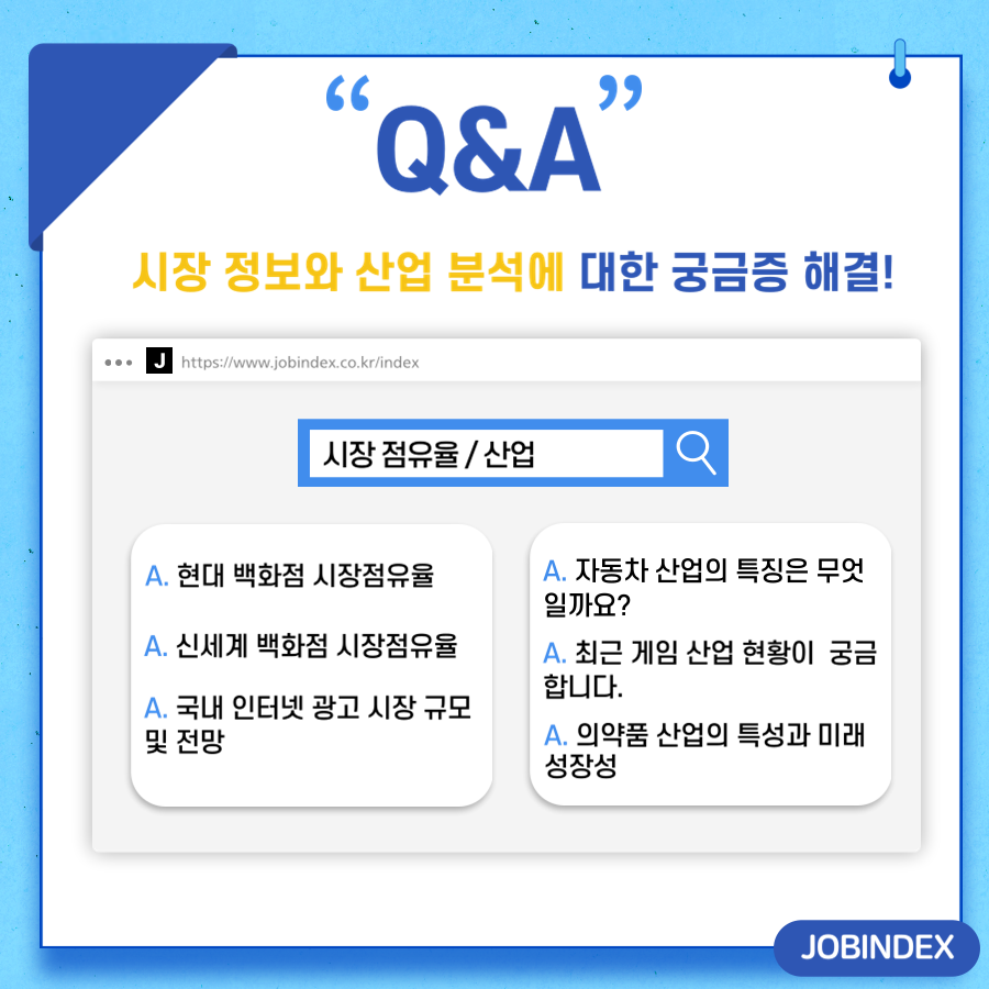 잡인덱스 Q&A는 질문과 답변을 통해 다양한 정보를 공유하는 곳입니다. 이직 및 채용, 시장과 산업 그리고 기업 정보에 대한 궁금증을 해결하고 업계 전문가의 답변을 받을 수 있는 공간입니다.