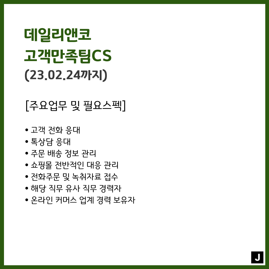 📣 데일리앤코 - 고객만족팀CS(23.02.24까지)