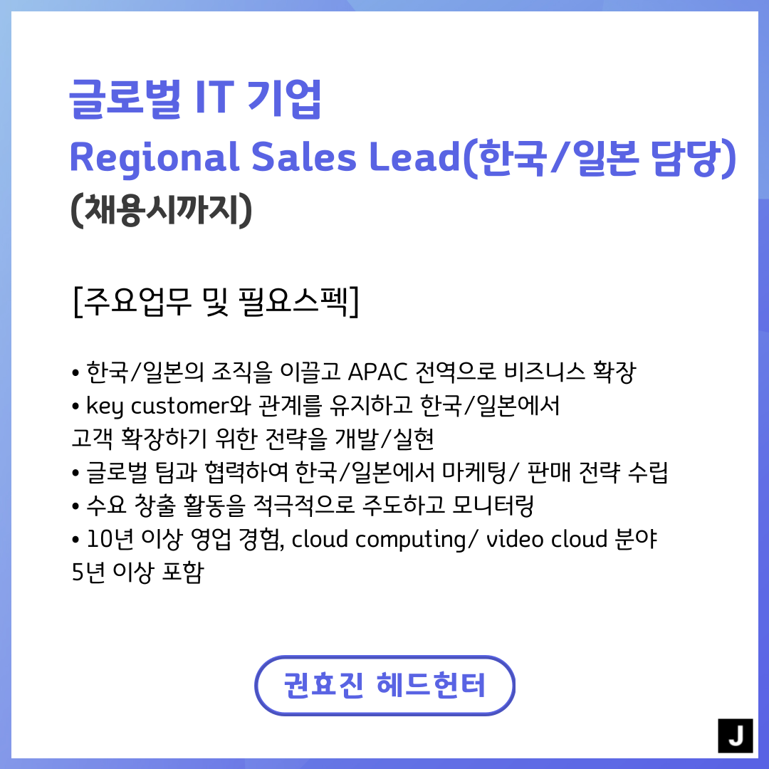 📢 [글로벌 IT기업] - Regional Sales Lead(한국/일본 담당)(채용시까지)