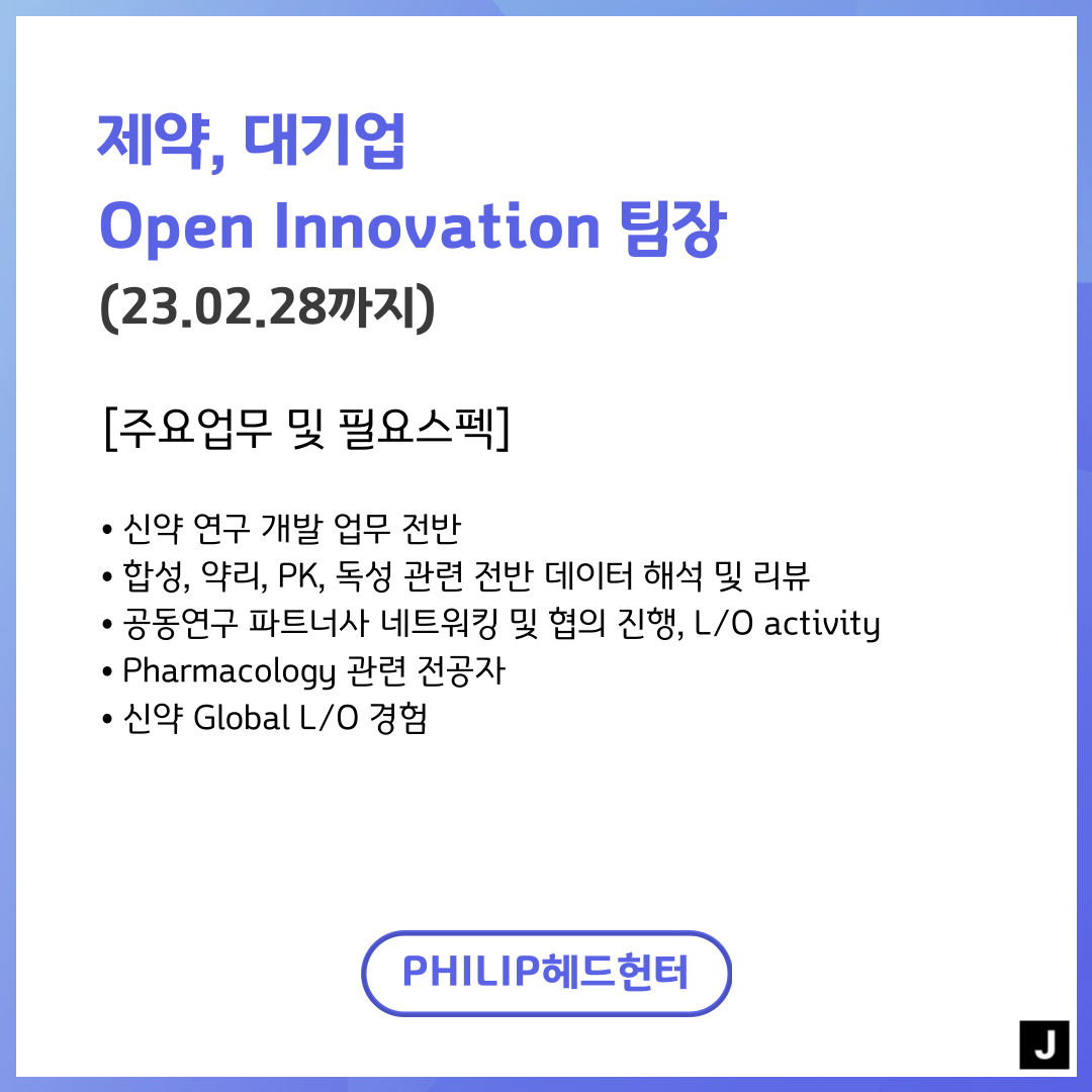 📢 [제약, 대기업] - Open Innovation팀장(23.02.28까지)