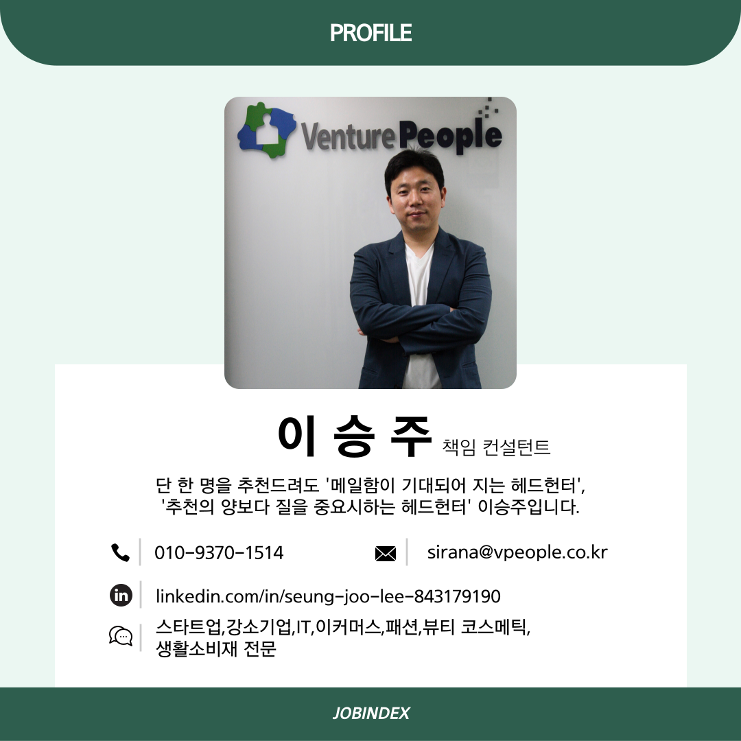 👉 벤처피플 이승주 헤드헌터 프로필 바로가기!