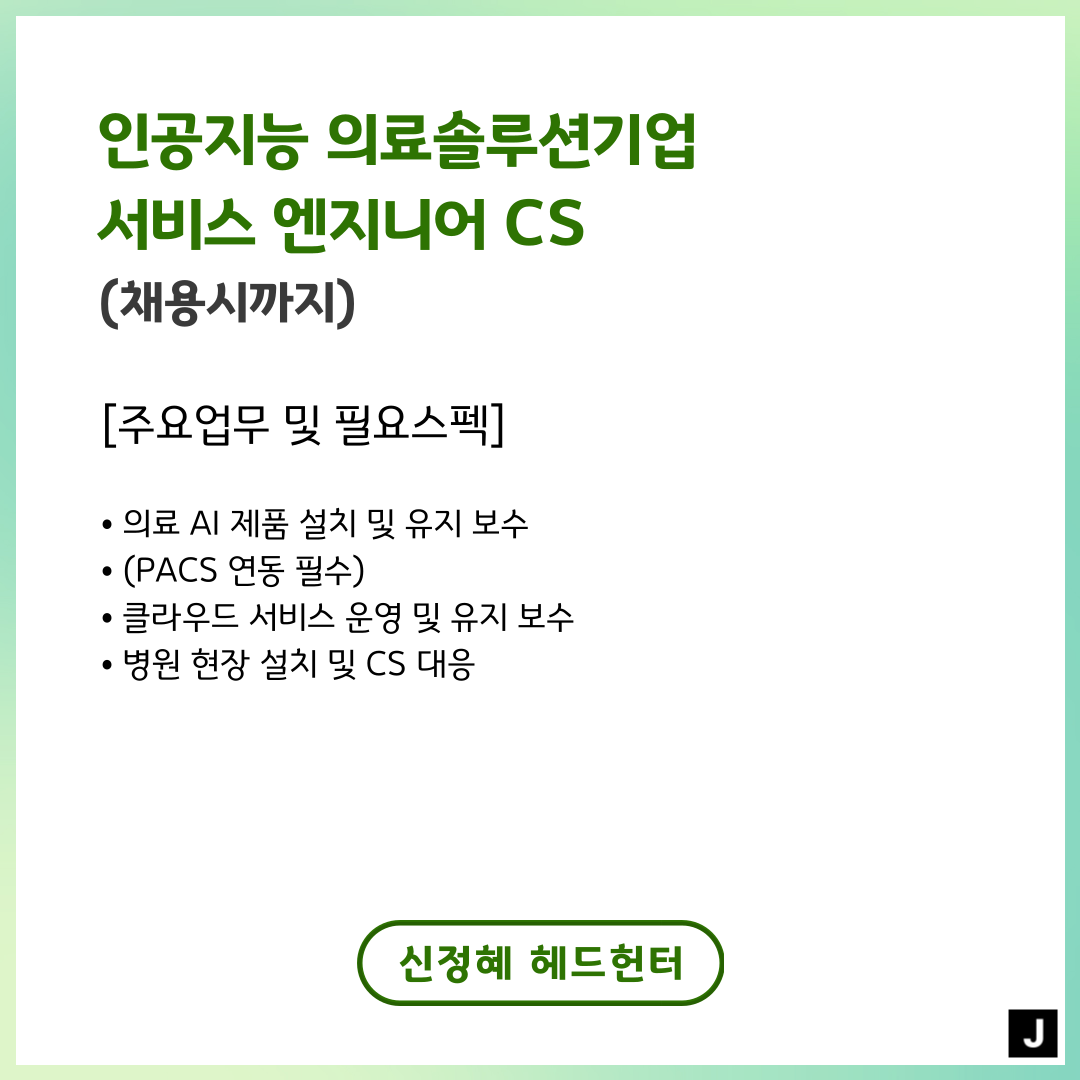 📢 [인공지능 의료솔루션기업] - 서비스 엔지니어CS(채용시까지)