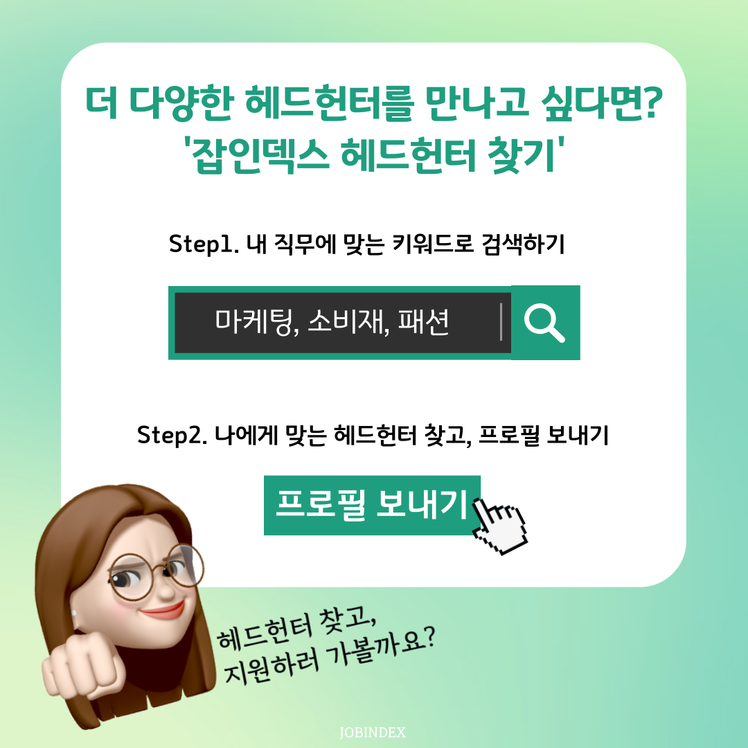 '잡인덱스 헤드헌터 찾기'에서 쉽고 간편하게 찾아보세요:)
