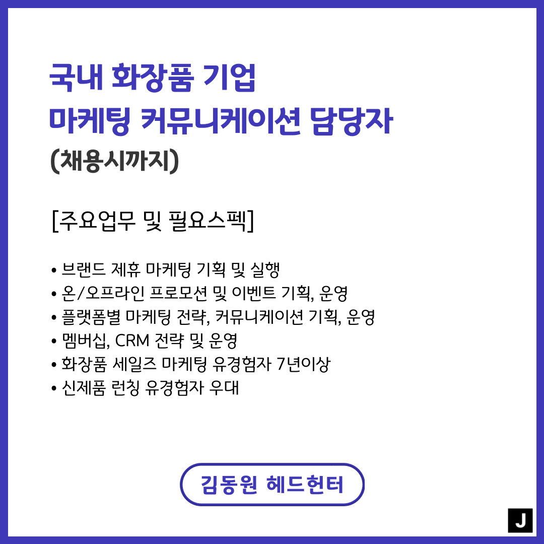 📢 [국내 화장품 기업] - 마케팅 커뮤니케이션 담당자(채용시까지)