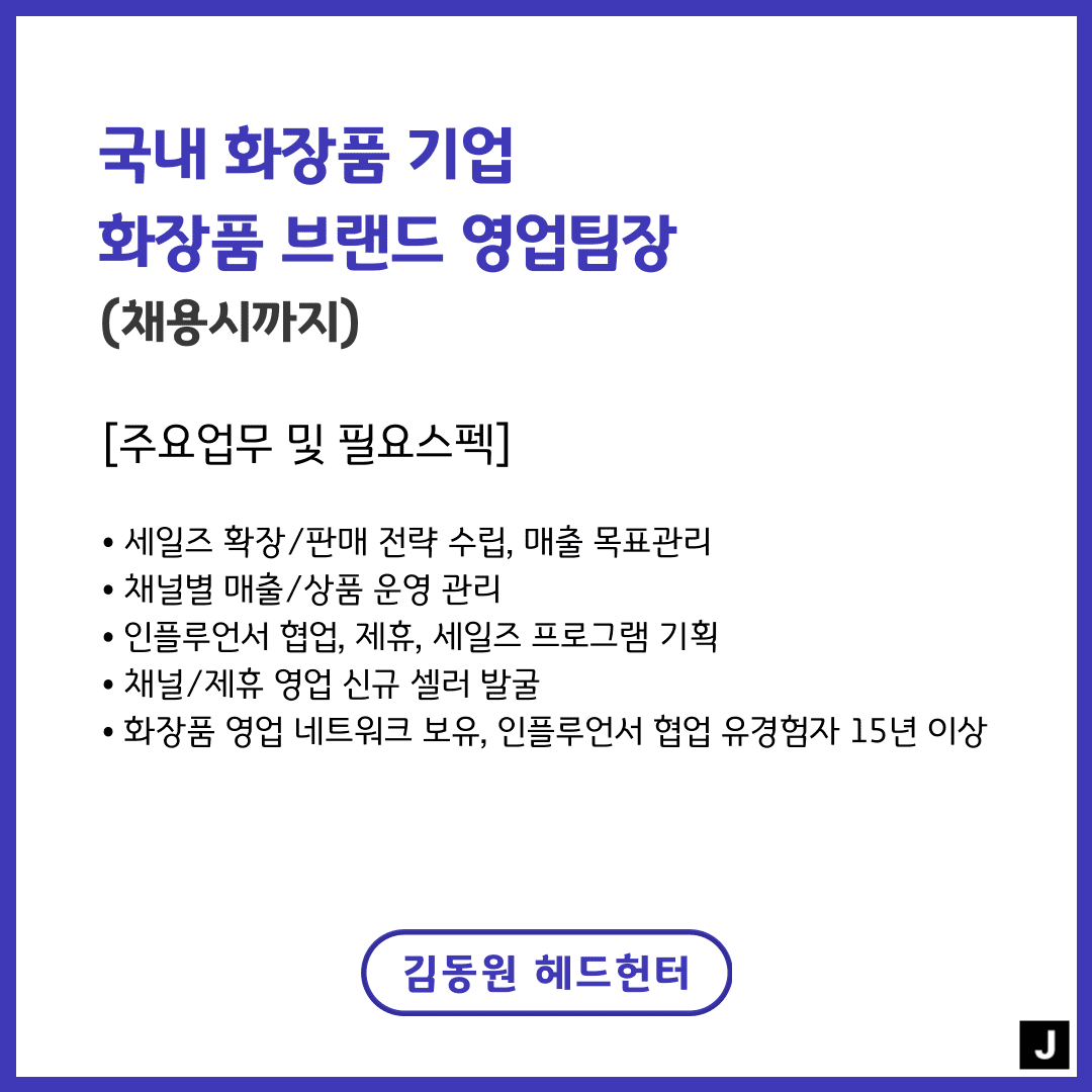 📢 [국내 화장품 기업] - 화장품 브랜드 영업팀장(채용시까지)