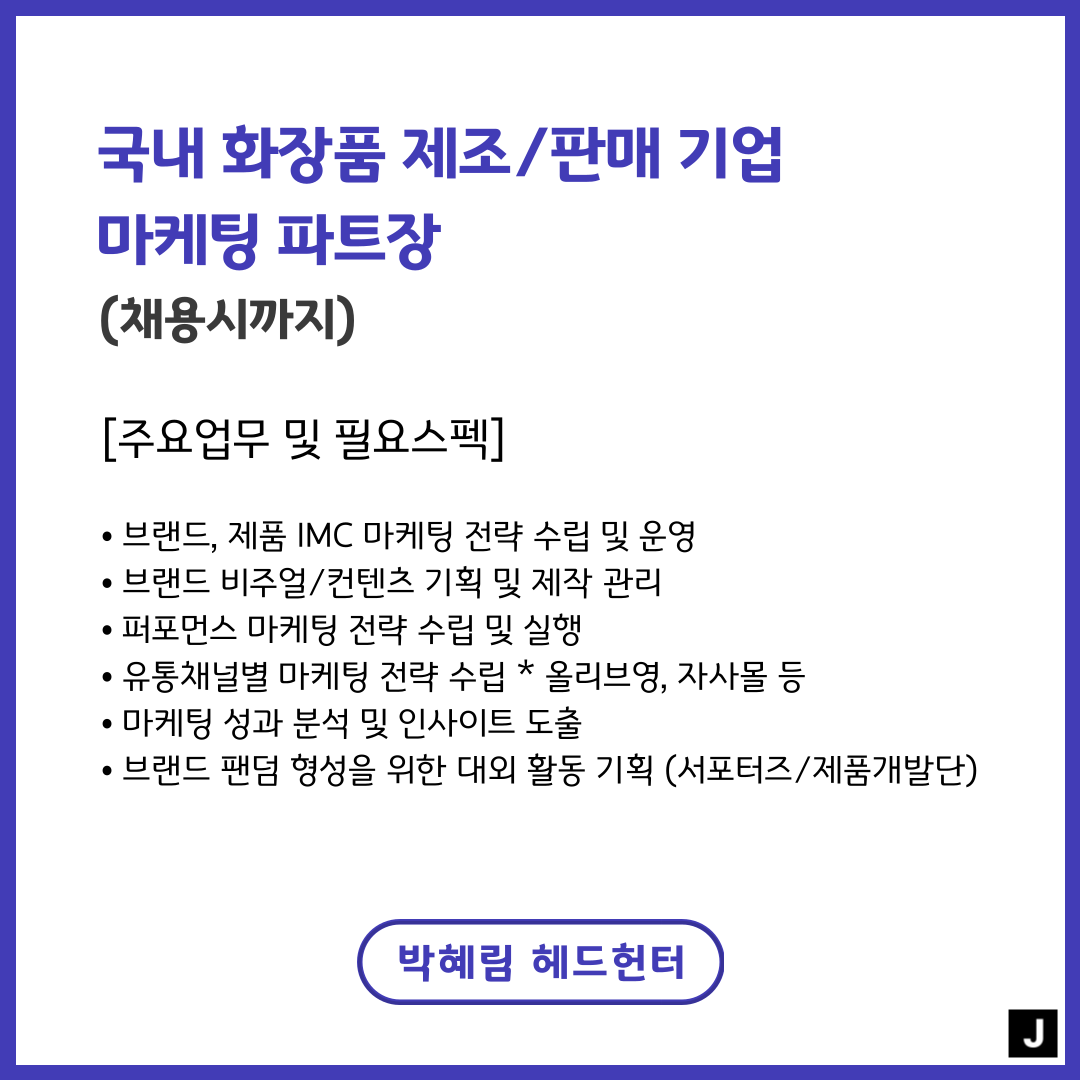 📢 [국내 화장품 제조/판매 기업] - 마케팅파트장(채용시까지)