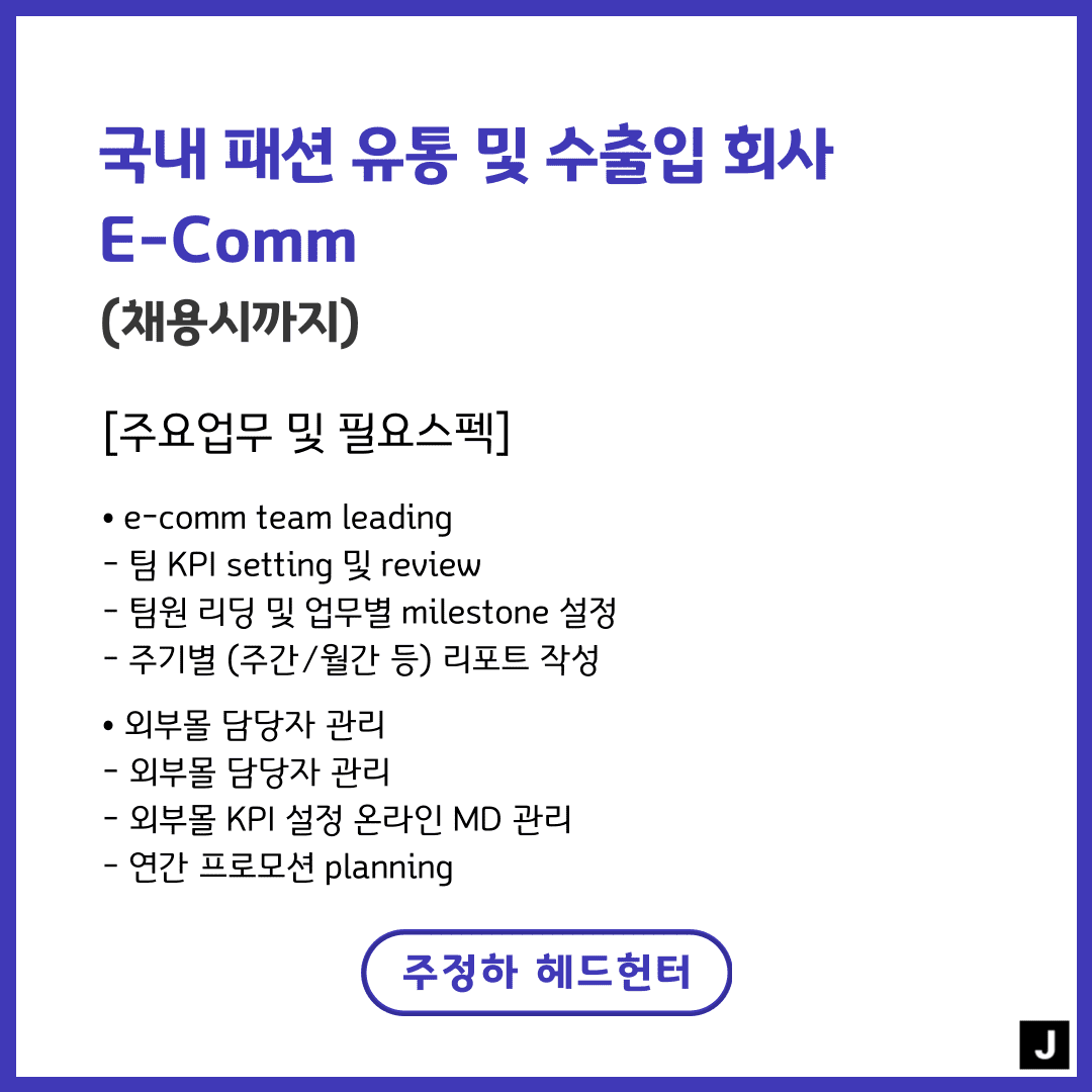 📢 [국내 패션 유통 및 수출입 회사] - E-Comm(채용시까지)