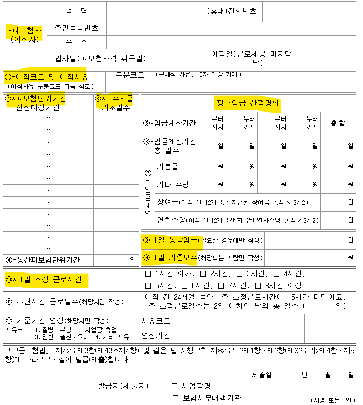 *주의 : 고용보험 자격 상실 사유와 이직코드는 같아야 함 > 거짓 진술시 과태료 부과