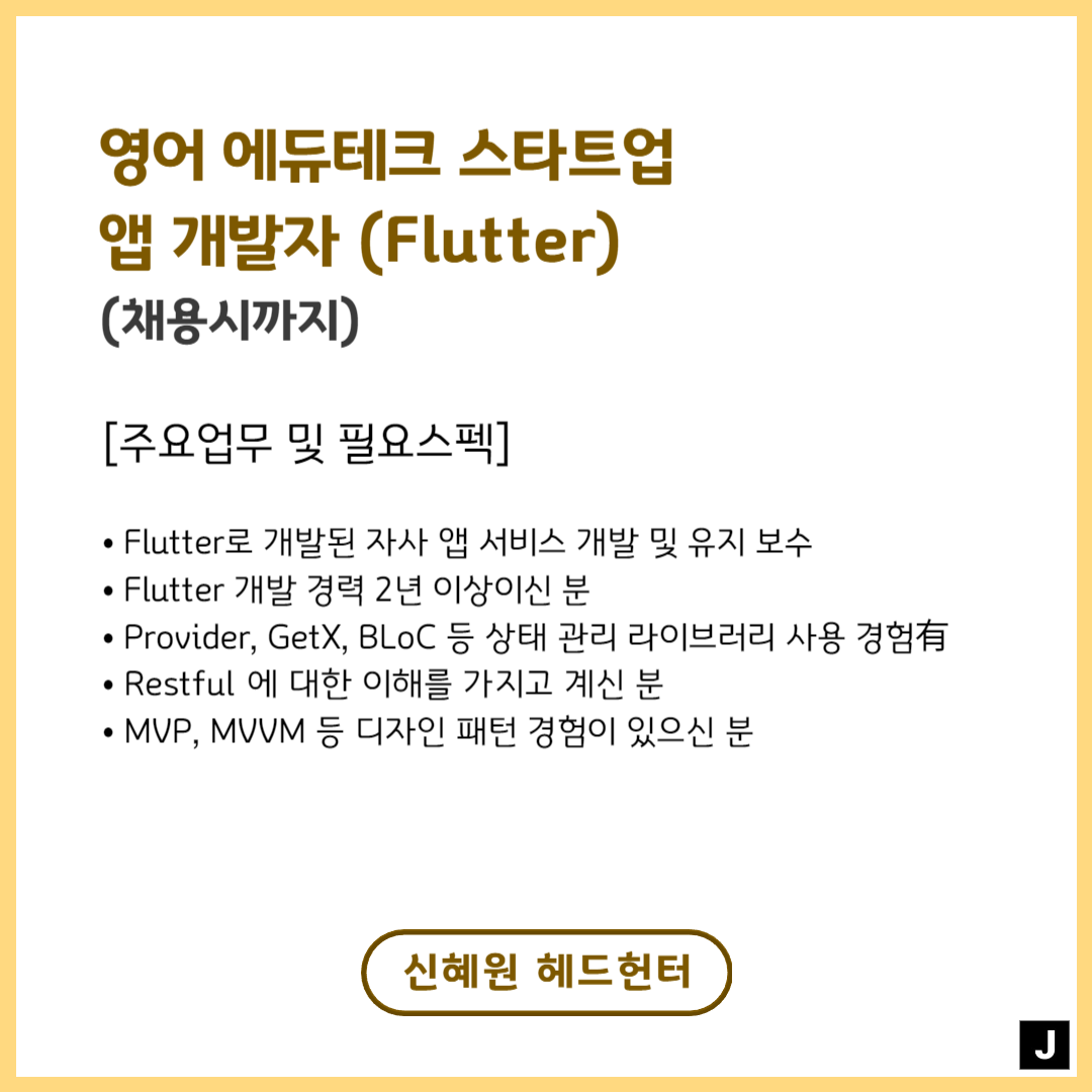📢 영어 에듀테크 스타트업 - 앱 개발자 Flutter(채용시까지)