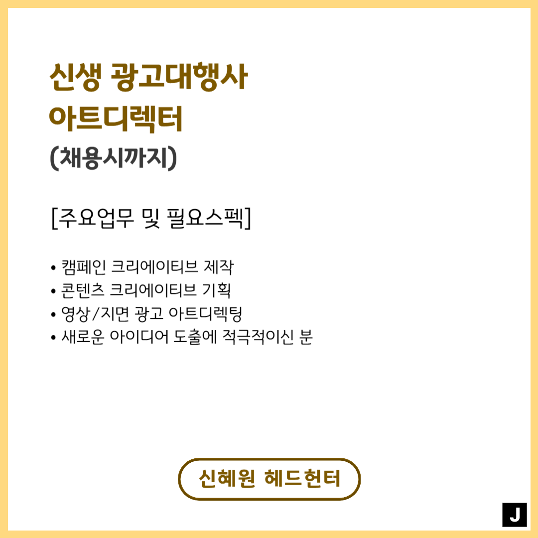 📢 폭풍 성장 중인 신생 광고대행사 - 아트디렉터(채용시까지)