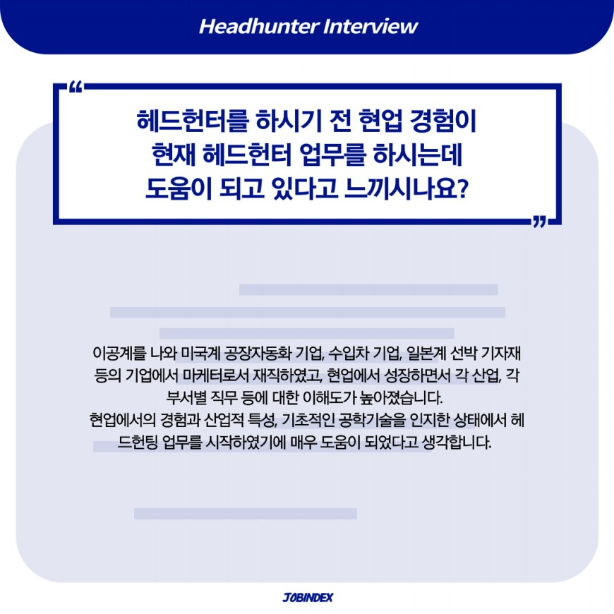 이런 경험과 산업적 특성, 기초적인 공학기술을 인지한 상태에서 헤드헌팅 업무를 시작하셨다고 합니다.