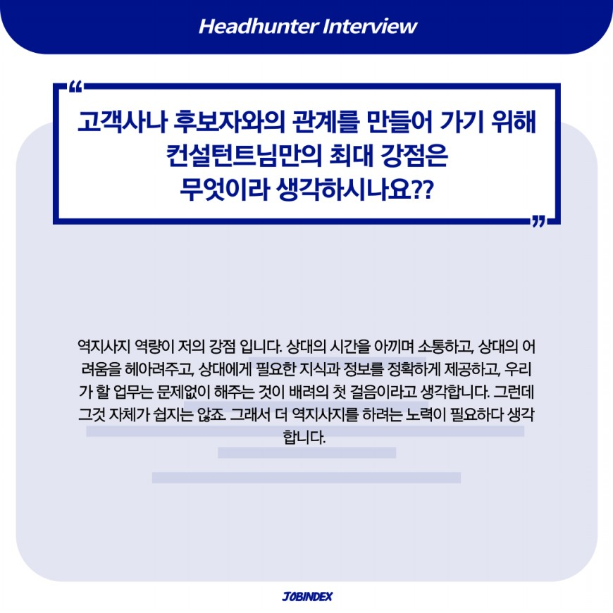 17년이 넘게 업계에서 전문가로서 고객사의 HR 파트너로 자리매김 해 오신 안은좌 수석 컨설턴트님의 이야기가