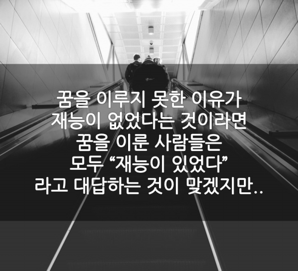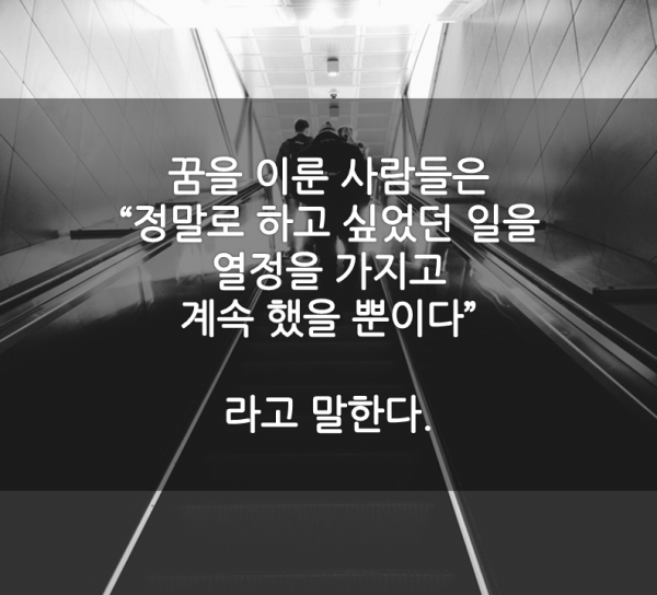 꿈을 이룬사람은 간절함과 열정과 꾸준함이 있었을 뿐이다 12,362 0 0 꿈을 이룬 사람들은 이야기한다."내가 정말 하고 싶은 일을 열정을 가지고 계속 했을 뿐이라고"<편지가게 글 중 일부> `17.02.01(updated. `17.02.01) 다음글당신이 진짜로 좋아하는 일을 하라, 그리고 자국을 남겨라 이전글자신의 인생을 결정하는건 그 누구도 아닌 바로 자기 자신이다
