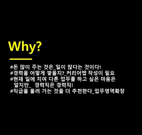 물론 언제가 정확한 타이밍이다 라는건 없다. 하지만 아마 입사하고 준비해야 하는 것이 이 이직이 아닐까 싶습니다. 뭐 커리어맵을 만들어야 한다는 이야기를 다르게 말하는 것 뿐이죠 ^^