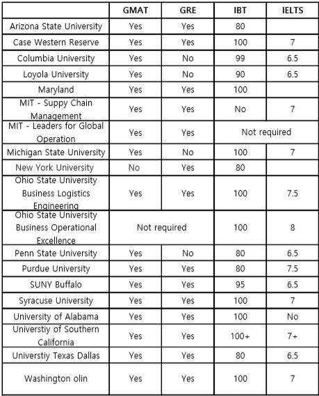 미국 MBA Operation 석사 지원 정보