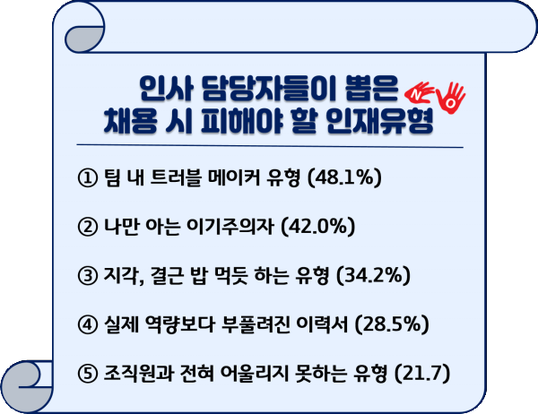 이들이 직접 뽑은 채용 시 피해야 할 인재유형을 알아보자 !