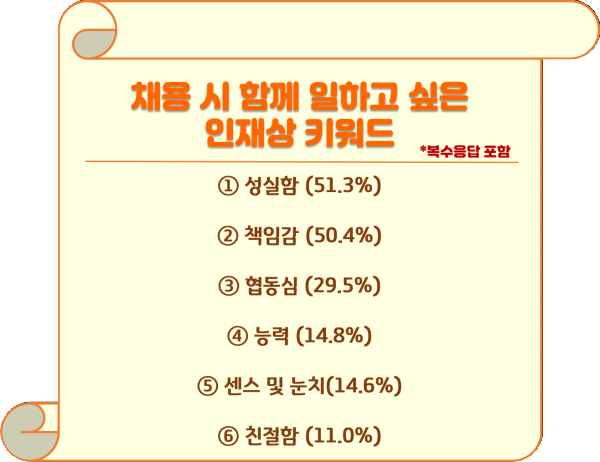 그렇다면 반대로 함께 일하고 싶은 인재상 키워드 순위는 어떻게 나타날까?