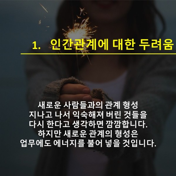 (1. 인간관계에 대한 두려움 - 새로운 사람과의 관계 형성은 두렵기도 하지만 새로운 활력소가 되기도 합니다)