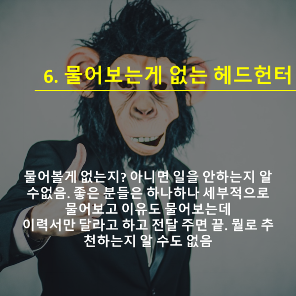 - 헤드헌터와 이직을 진행하고 있었는데 같은 회사의 다른 헤드헌터가 전화와서 또 다른 회사 소개할 때