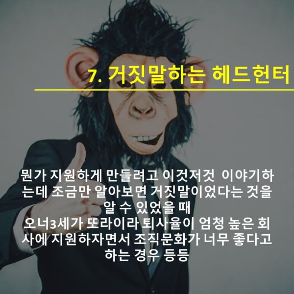 오너3세가 또라이라 퇴사율이 엄청 높은 회사에 지원하자면서 조직문화가 너무 좋다고 하는 경우 등등
