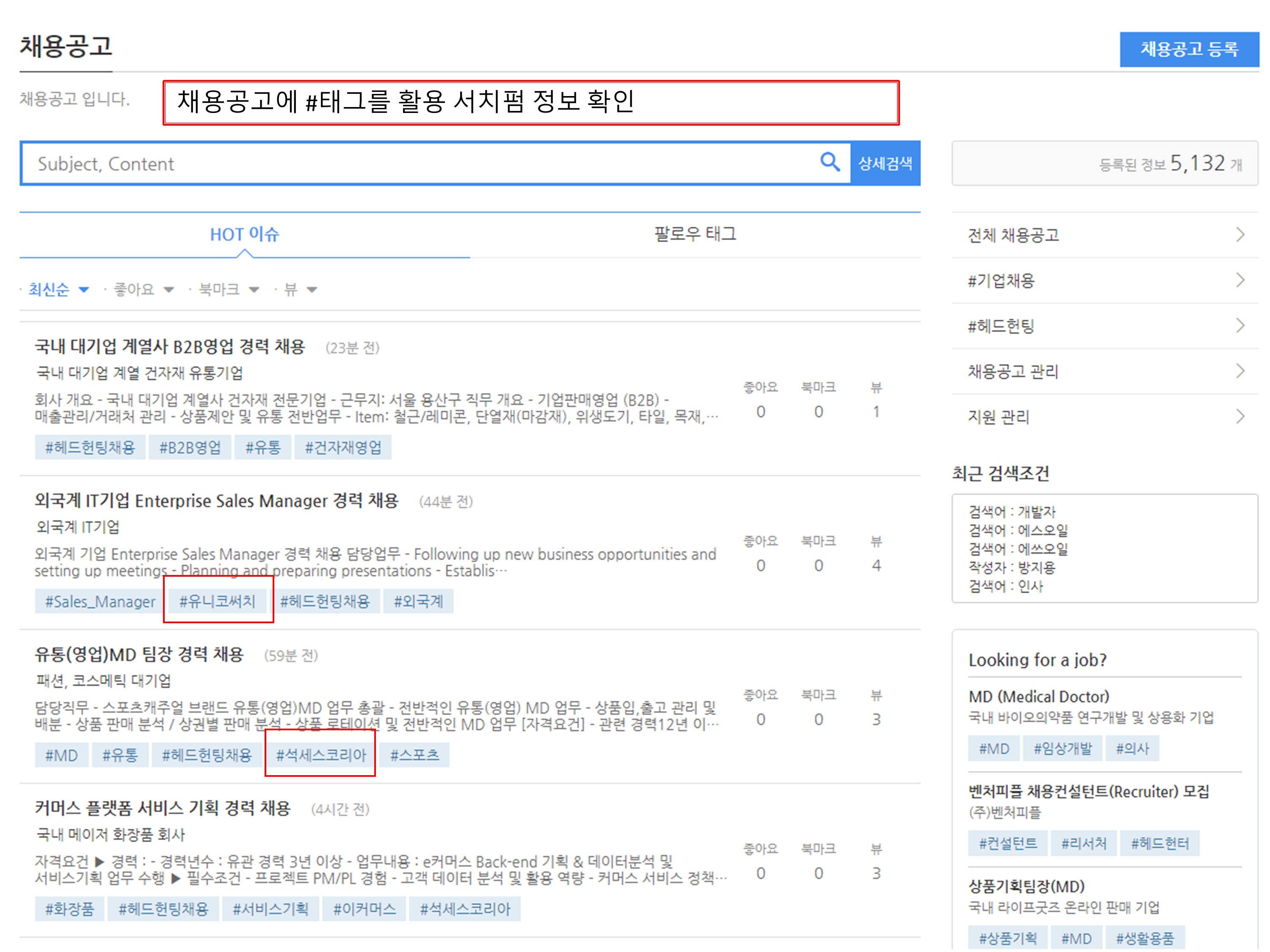 1. 채용공고에서 #(헤드헌팅사이름)을 클릭합니다.
