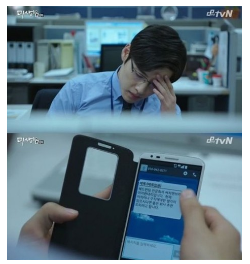 <헤드헌터 문자를 보고 고민하고있는 장백기 출처: tvn 미생>