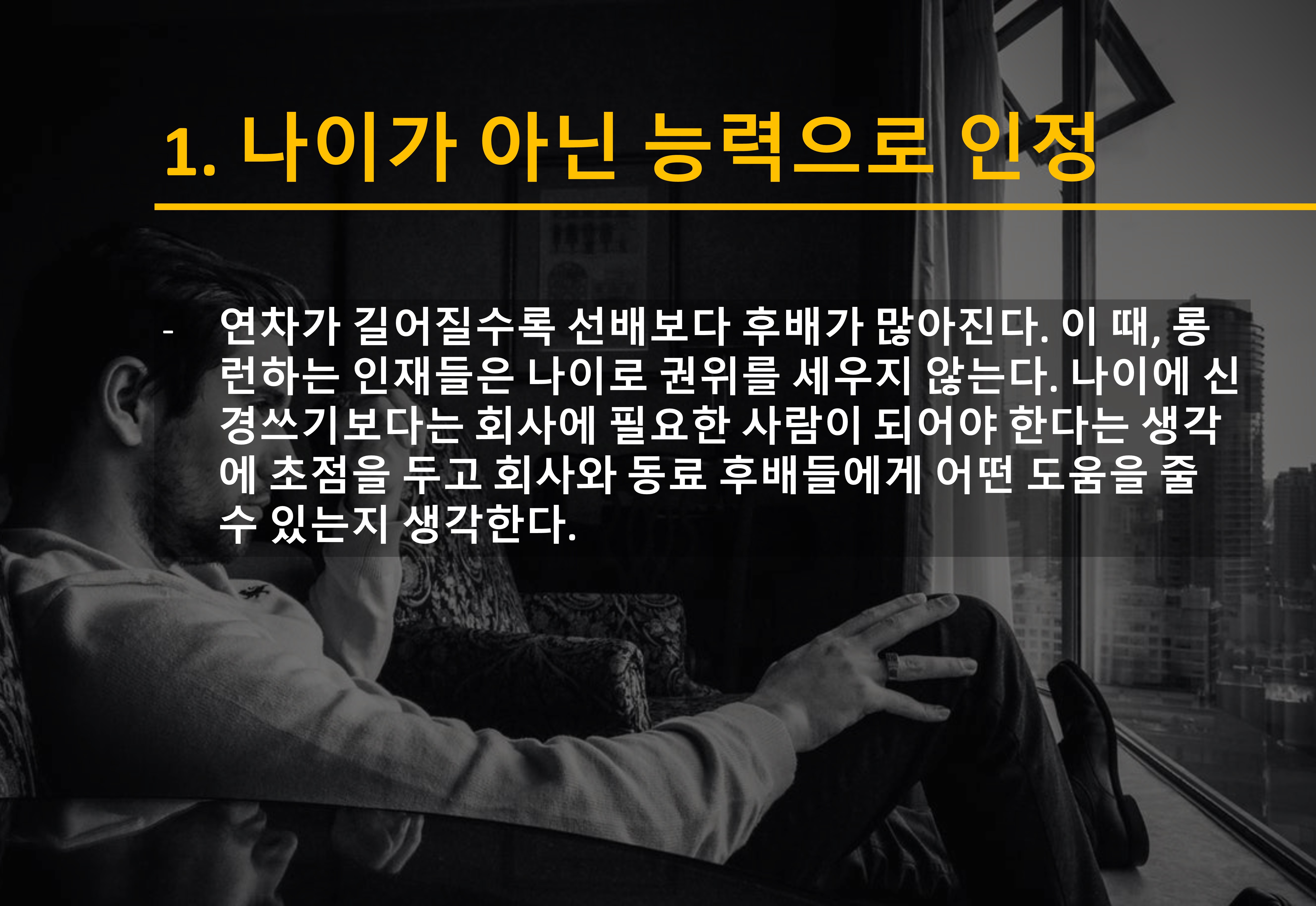 1. 나이나 연차가 아닌 능력으로 인정받는 사람