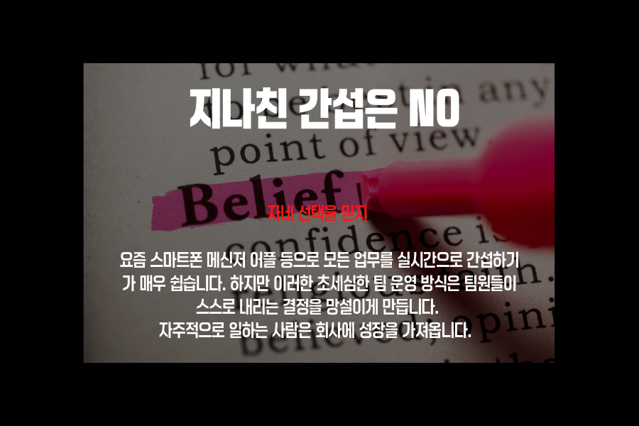 결정권을 부여했다면 부하직원을 믿으세요. 자신의 결정에 따른 책임을 지는법을 배우도록 이끄는 것 역시 리더의 역할입니다.