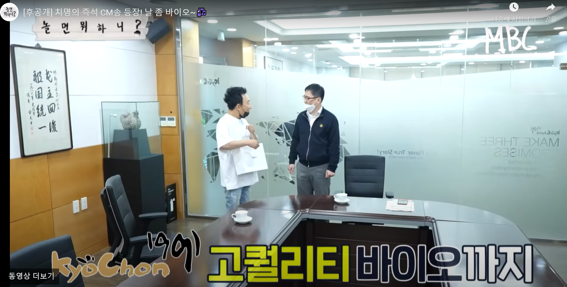 놀면뭐하니에서 후 공개한 교촌 PPL이다. '관짝 소년단'이라는 인터넷 밈을 활용해 병맛컨셉으로 'PPL을 살렸다' , '편집레전드', 'PPL 도배해도 되니까 재밌게 만들어주세요' 등 긍정적인 반응을 이끌었다.
