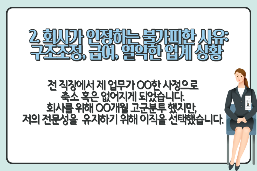 2. 회사의 불가피한 사유 : 구조조정, 밀린 급여, 열악한 업계 현황
