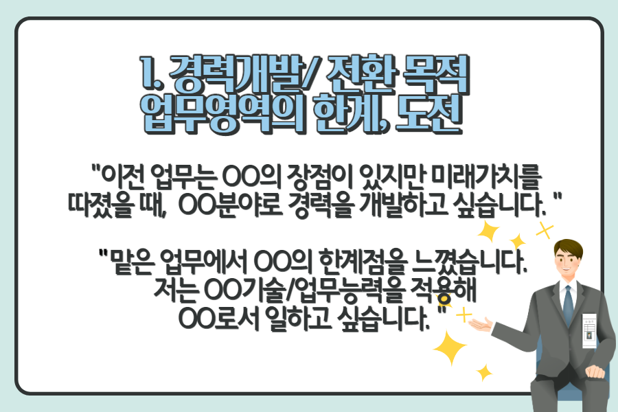 1. 경력개발/ 전환의 목적 : 업무영역의 한계, 타 직종의 도전