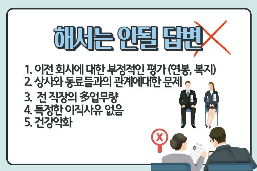 이직사유 질문에대해 해서는 안될 답변입니다.