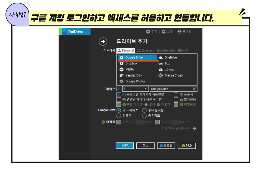 구글 드라이브를 예로 들어 설명해보겠습니다.