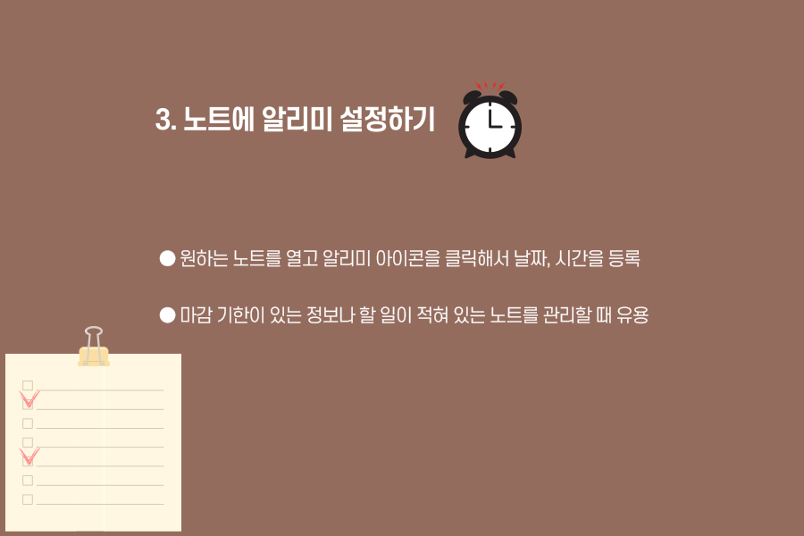 마감 기한이 있는 정보나 할 일이 적혀 있는 노트를 관리할 때 유용한 기능이다.