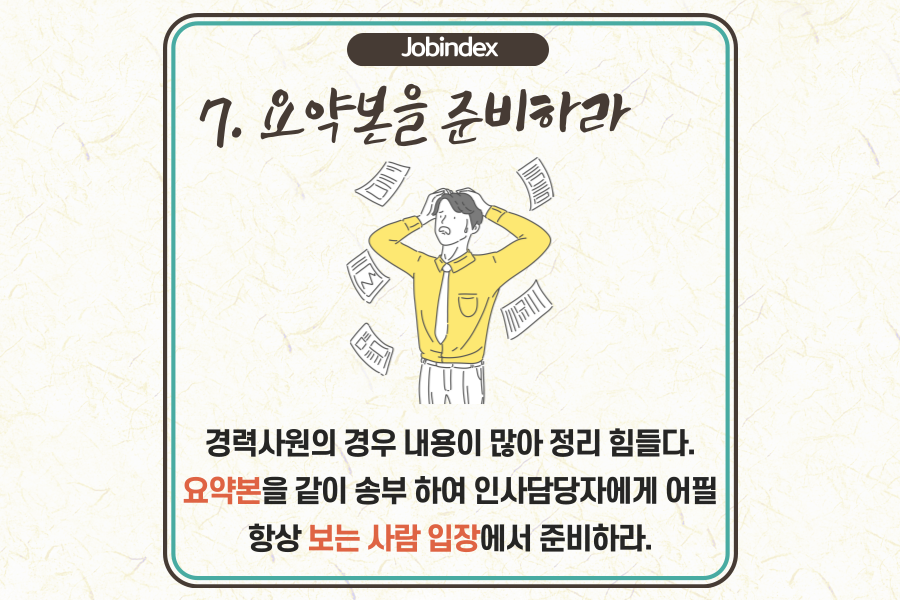 이때 요약본을 같이 송부 하면 인사담당자에게 좋은 느낌을 준다.
