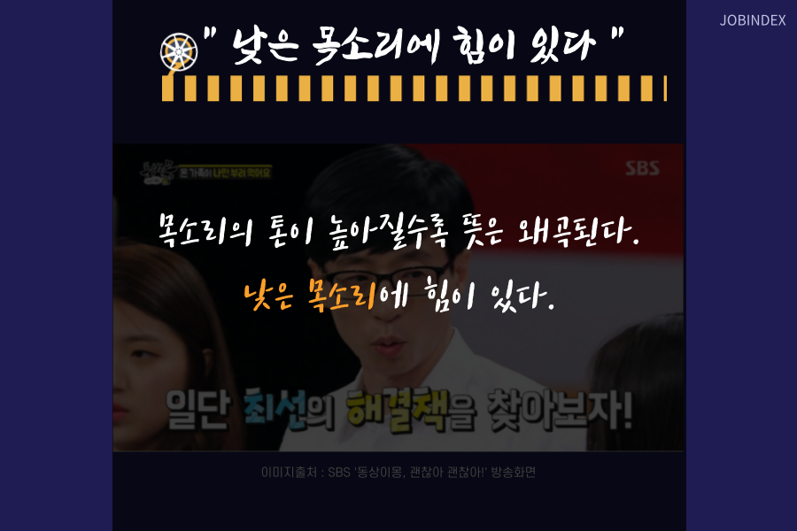 3. "목소리의 톤이 높아질수록 뜻은 왜곡된다. 낮은 목소리에 힘이 있다."