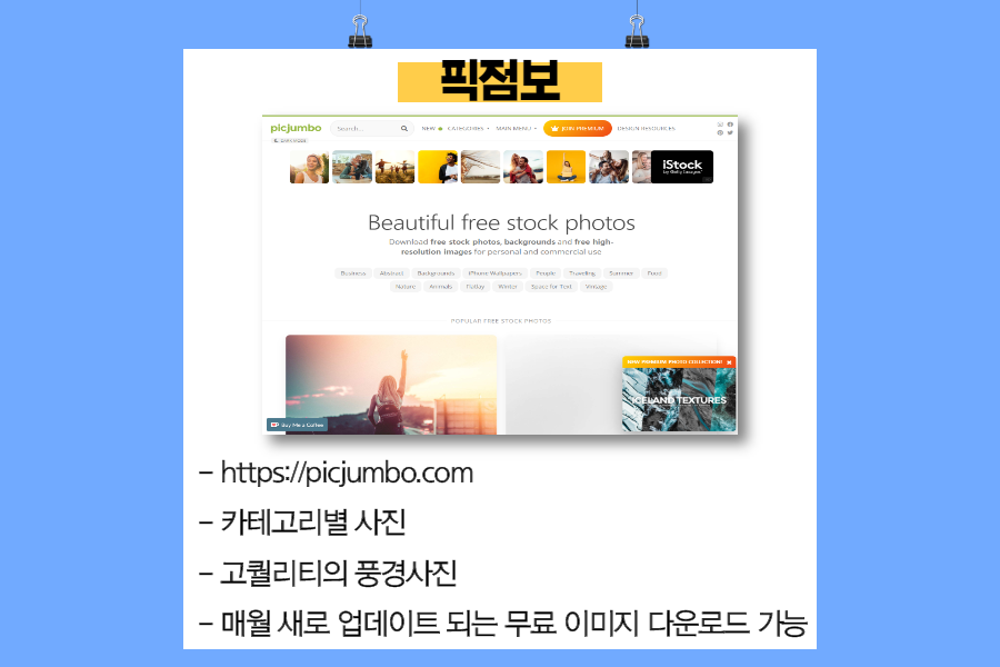 - 회원 가입 없이 매월 새로 업데이트 되는 무료 이미지 다운로드 가능