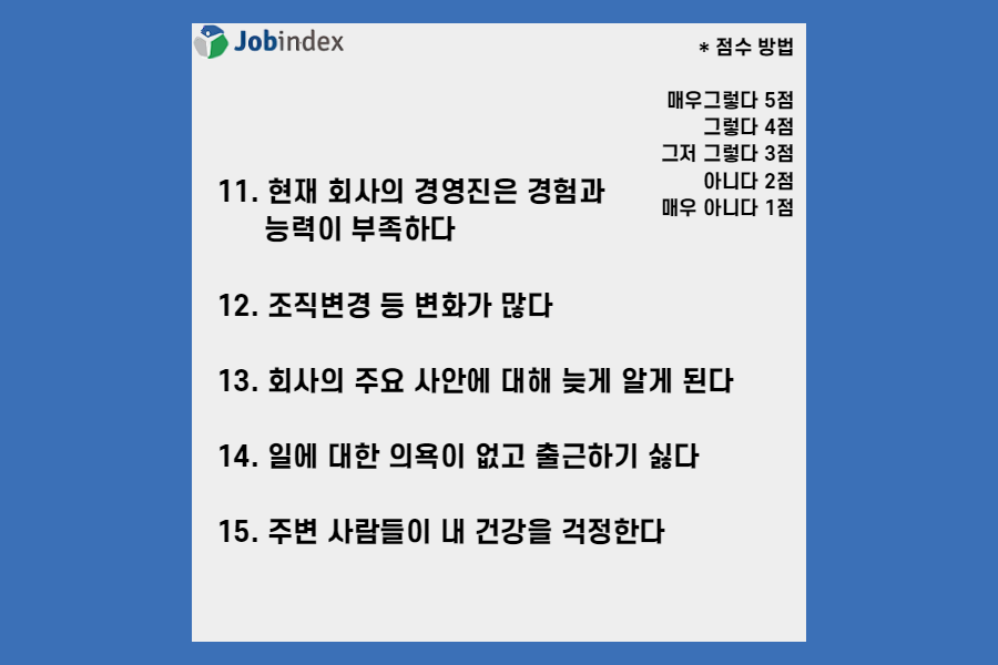 14. 일에 대한 의욕이 없고 출근하기 싫다