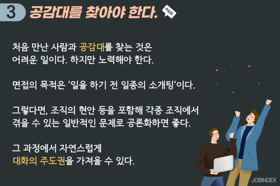 이를 토대로 주도권을 갖고, 공감대를 찾을 수 있다.